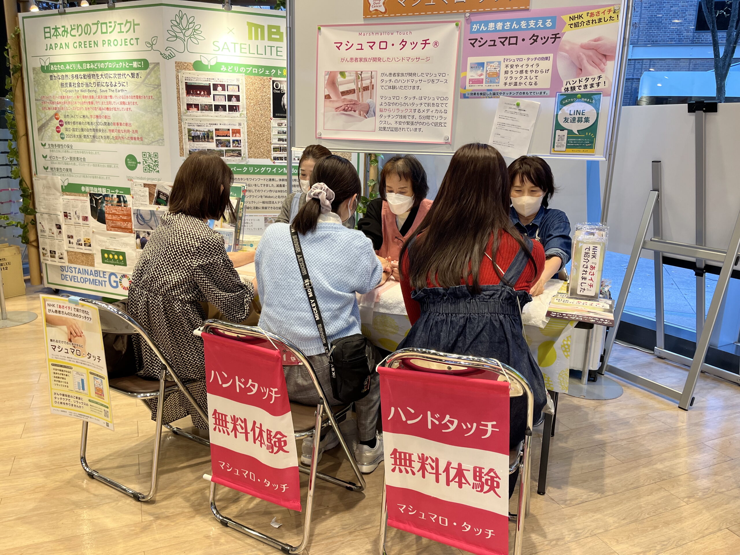 乳がんと向き合う梅宮アンナさんや、大腸がんを乗り越えた原口文仁選手が登壇した「ちゃやまちキャンサーフォーラム2025」。 私たちも8名のマシュマロ・タッチ認定者とともに、今年も体験ブースを出展しました。