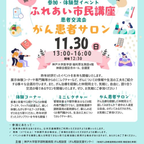 【11/30開催】神戸大学病院「ふれあい市民講座×がん患者サロン」|がん患者さん・家族のための体験型イベント